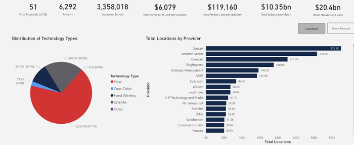 According to the tracking data of the Broadband Equity, Access and Deployment (BEAD) plan proposal on the Connected Nation website, out of the 3.36 million identified site allocation options, approximately 67.1% will use fiber optic connections. 20.5% will choose low orbit satellite connections. And the remaining portion will use fixed wireless access (10%) and coaxial cables (2.4%). This data covers 51 out of 56 final proposals and may cover a total of 4.2 million sites.