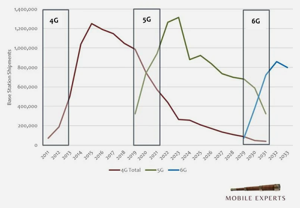 Mobile Experts released its flagship forecast report last week, estimating the deployment range of 6G during the 2030-2033 period through in-depth research. In short, we expect the number of base stations to be approximately half of the 4G and 5G cycles. Please allow me to explain the reason.